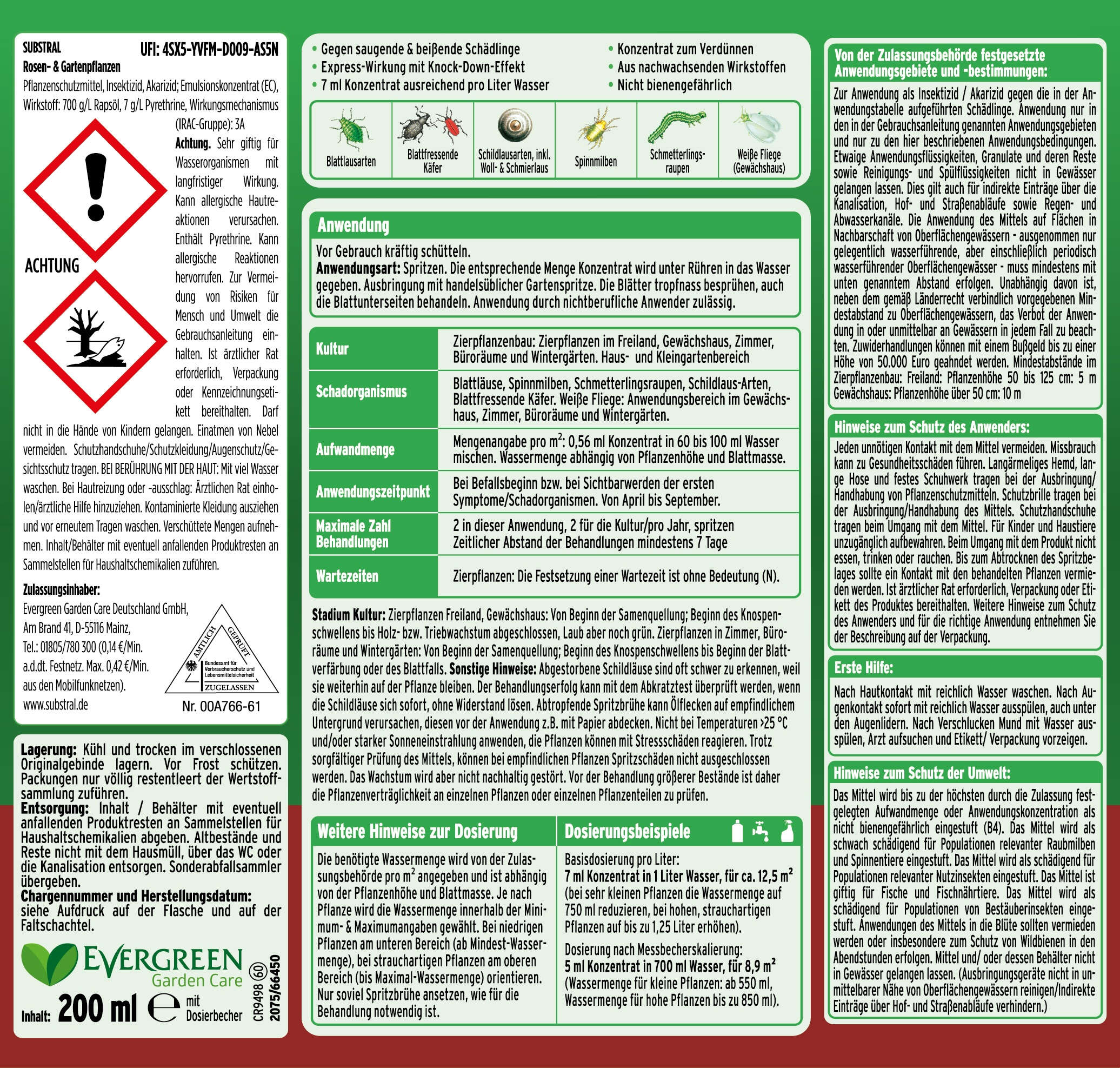 gegeben. Ausbringung mit handelsüblicher Gartenspritze. Die Blätter tropfnass besprühen, auch die Blattunterseiten behandeln. Anwendung durch nichtberufliche Anwender zulässig.